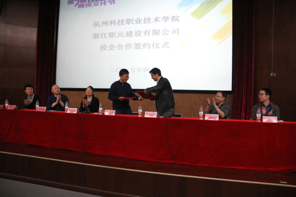 开幕式上,城建学院与浙江钜元建筑有限公司签订了校企合作协议。富阳苑通建筑有限公司为家庭贫困、品学兼优的6名学生颁发了“苑通”鲁班励志奖学金。