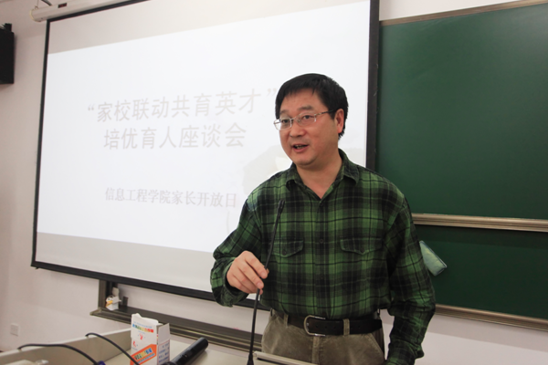 信息工程学院院长杨悦梅对参加开放日的家长表示热烈的欢迎,她介绍了信息工程学院的基本情况,并表示计算机大类分流的目的是为了学生的成长,希望家长多与子女沟通,帮助他们更好地选择专业方向。信息学院党总支书记傅联云就学院的团学活动、文化品牌、专升本报名等学生工作作了详细介绍。信息学院副院长吴龙解读了分流方案和细则,并从改革历程、专业方向及培养目标、课程体系、分流计划实施进度等角度向家长介绍分流工作的情况。