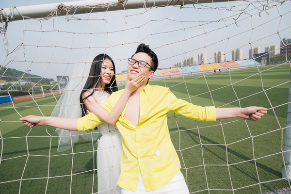 “回学校拍照是我提出来的,”马月良有点不好意思地跟记者说起这次婚纱照的由来:“她(薛梦露)听了之后非常赞成。”薛梦露说,学校校园是他俩开始相爱的地方,有很多的回忆,“与其去别人都去的地方拍婚纱照,倒不如选择学校这个充满回忆和故事的地方”。回到曾经奔跑过的操场,回到曾经携手走过的小路,马月良和薛梦露都难以抑制心中的激动,并感慨时光飞逝,“感觉自己还是个学生,其实已经毕业两年了”。