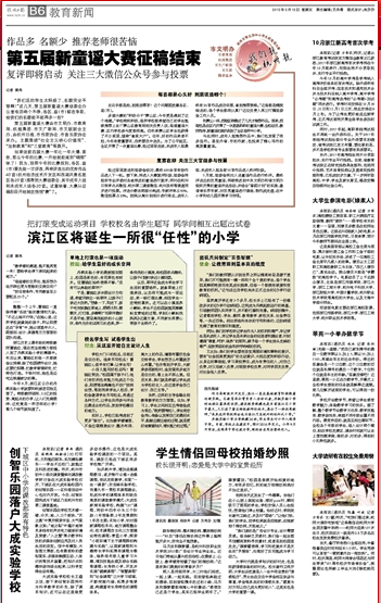 中国网 乐活中国栏目报道 5月15日《杭州日报》 B06 教育新闻版