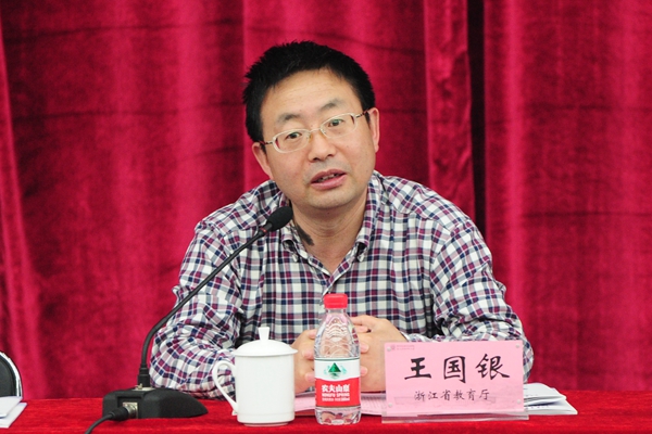 2015年浙江省高职高专院校技能大赛组委会办公室主任、浙江省教育厅高教处副处长王国银在开幕式上讲话。王国银表示,举办高职院校技能大赛是人才培养的重要举措,对于推进学校教学改革、增进校际交流具有重要意义,通过技能大赛能促使学校重视实践教学,注重对学生能力的培养和提升。王国银指出,技能竞赛要始终把学生放在第一位,整个赛事的设计与实施要以锻炼学生实践能力为目的;要确保竞赛公正公平发展,让大赛成为比拼能力、展示职业素养与做人品质的平台;要在竞赛过程中相互交流学习,取长补短,共同提高专业建设的能力与水平;要面向社会,以大赛推动校企深度融合。