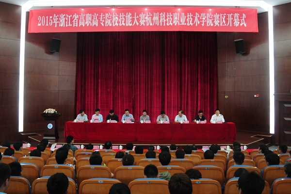 5月16日,2015年浙江省高职高专院校技能大赛暨全国职业院校技能大赛杭州科技职业技术学院赛区开幕式在我校隆重举行。2015年浙江省高职高专院校技能大赛组委会办公室主任、浙江省教育厅高教处副处长王国银,杭州市教育局高师处处长孙青峰,浙江省高职高专教育自动化类教学指导委员会副主任委员、浙江金融职业学院院长盛健,浙江省高职高专教育自动化类教学指导委员会副主任委员、浙江机电职业技术学院副院长张耀,浙江水利水电学院副院长徐金寿,我校党委书记傅勤,浙江省高职高专教育自动化类教学指导委员会主任委员、我校校长谢列卫及副校长何树贵出席开幕式。我校合作企业浙江凯达机床股份有限公司、浙江铁流离合器股份有限公司、浙江天煌科技实业有限公司、浙江富春江通信集团公司环保热电公司、中控科技集团工程公司、亚龙科技集团有限公司应邀参加了开幕式。
