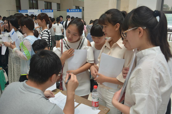 除应届毕业生外,此次招聘会现场还出现了大一学生的身影,“我们主要是来观摩的,感受下招聘的气氛,了解一些相关的就业信息,希望为以后就业打下基础”。
