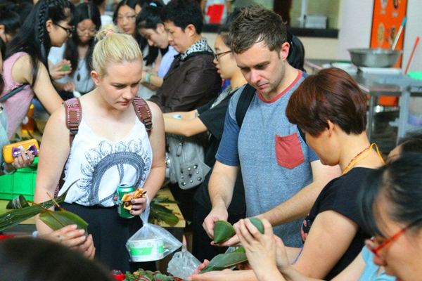 适逢我国传统节日“端午节”,6月18日,访学团成员饶有兴致地参加了我校“粽叶飘香端午,幸福传递师生情”活动,和我校师生一起体验包粽子,共度传统节日。