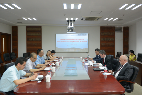 8月17日,澳大利亚墨尔本理工学院首席执行官罗伯特•伍德(Robert Wood)一行三人来我校访问。这是伍德先生今年上任该校CEO后首次访问中国,我校是其首站目的地,随行的还有墨尔本理工学院国际部主任蒂诺•贝迪奥尔(Dino Bettiol)先生和驻中国代表处总经理刘军先生。我校党委书记傅勤、校长谢列卫、副校长何树贵分别接见了澳方来宾。