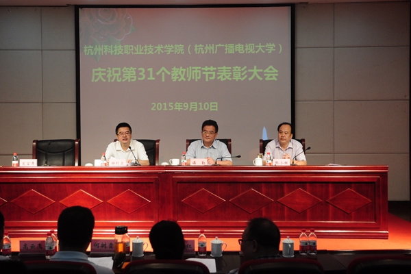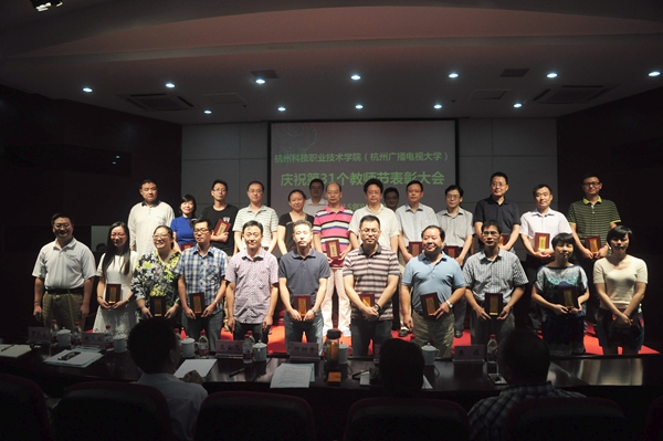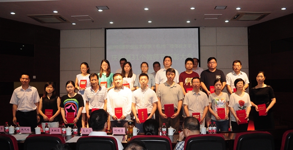 校党委副书记张小红宣读了表彰决定。校领导为获得 “杭州市优秀教师、优秀教育工作者”、“杭州市教育系统优秀教师、优秀教育工作者”、“杭州市第三届师德先进个人”、“校先进工作者”、“校三育人先进集体和个人”、“校优秀班主任、优秀辅导员”等称号的先进集体与先进个人和获得“浙江省任教三十年教师”称号的同志颁发了荣誉证书。优秀教师代表苏永华作了交流发言。