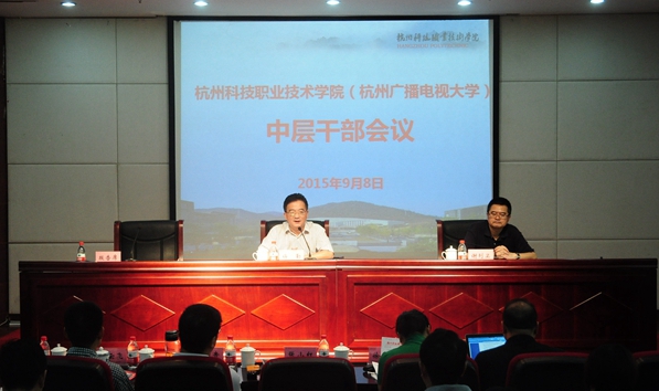 9月8日至10日,我校在陶研馆报告厅召开中层干部(扩大)会议,全体校领导出席会议,全体中层干部、各高职二级学院(部)教学实训科科长、学工办主任、专业带头人(负责人)、教研室主任、校学术委员会委员、正高级职称专业技术人员、全体学生辅导员参加会议。