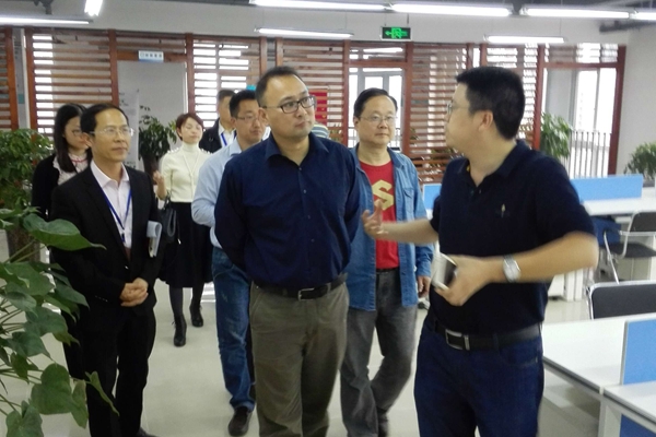 成都职业技术学院王涛副院长及相关部门负责人陪同考察了位于成都职业技术学院高新校区内的软件教育园,并详细介绍了“政行企校”共建的软件教育园的管理经验。袁校长还分别与“软件学院”、“成都创业学院”的负责人详细交流了“项目化教学”、“孵化平台”、“创客部落” 等方面的情况。