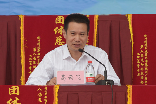 10月23日,我校第八届运动会在高桥校区隆重开幕。校党委书记傅勤,校长谢列卫,副校长何树贵、徐红,纪委书记高云飞,副校长袁俊出席了开幕式。党委书记傅勤代表学校宣布杭州科技职业技术学院第八届运动会开幕。开幕式由校体委副主任、纪委书记高云飞主持。