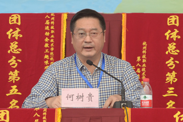 校体委主任、本届运动会组委会主任、副校长何树贵在开幕辞中表示,校运会不仅是学校体育教学的重要环节和体育活动的重要形式,也是对体育教学和活动成果的综合检验,更是学校校风、教风和学风及校园精神文明建设的一次展示。在校园里,体育运动不仅是一门课程,更重要的是它能提升师生的健康意识和意志品质,增强师生的团队精神,陶冶健康的情操。何校长希望全校师生以今年运动会为契机,充分发扬团结合作的精神,追求自我超越的勇气,把运动赛场上的拼搏和顽强带到工作中,推进各项事业不断进步。