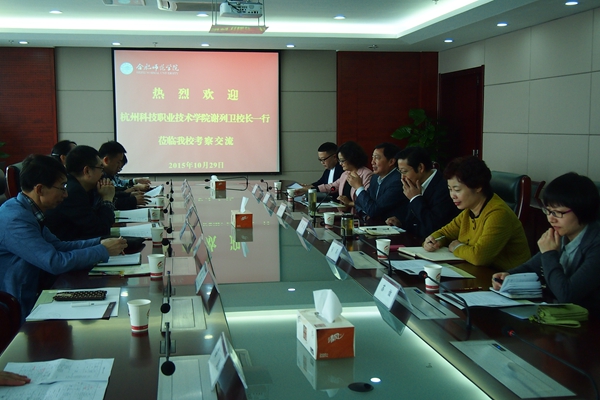 10月29日,谢列卫校长、徐红副校长等一行8人参观访问了合肥师范学院,考察学习校园文化建设与行知文化传承、创新的经验。合肥师范学院纪委书记汤增产介绍了该校的发展历史和“举行知旗、走应用路、创师范牌”的学校发展方略等基本情况。学院党委宣传部部长干敬睿专题介绍了该校行知文化建设情况,重点介绍了学陶、师陶活动“六进”做法(即进人才培养方案、进学生社会实践活动、进校园文化活动、进科研课题立项、进师德建设和教师能力提升计划、进新生入学教育)和“双百实践”项目(即教师进百家企业、学生辟百家“行知讲堂”)的典型经验。该校教务处副处长胡昂介绍了该校如何开设陶行知课程、如何结合创新创业教育开展素质拓展学分认定工作的具体做法。谢列卫校长表示,我校目前正在深化高职内涵建设,办学的灵魂就是行知文化特色,只有“以文化引领办学,以文化服务办学”,自觉践行行知文化,才能办出学校品牌,办出学校的核心竞争力。
