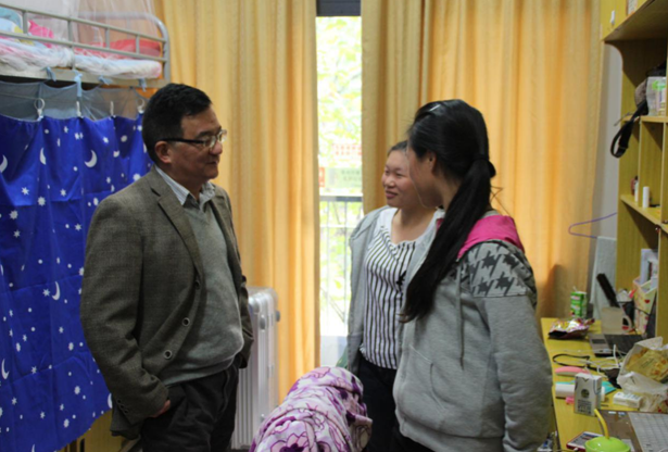 11月3日,校党委书记傅勤与来自工商学院、信息工程学院、旅游学院、城市建设学院的6位大一新生共进午餐,并走访了学生公寓。图书馆(网络信息中心)负责人陪同走访。