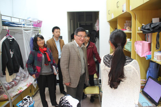午餐结束后,傅勤书记走访了学生公寓兰园新生寝室,现场查看了寝室卫生情况,并提醒大家冬季用电安全。