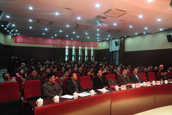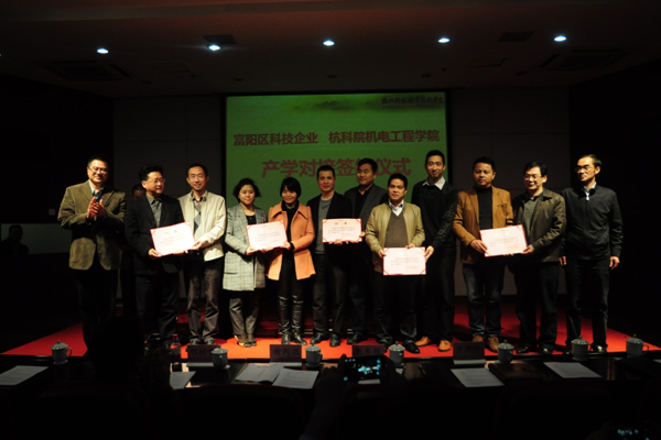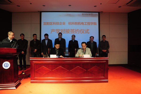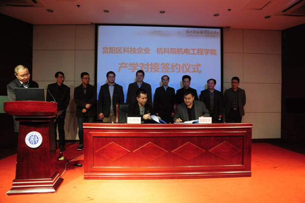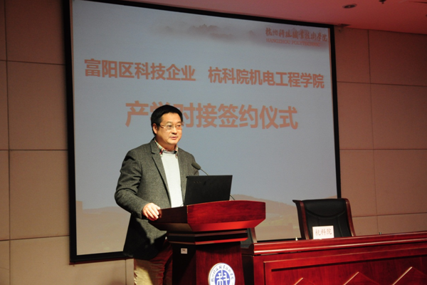 11月19日下午,我校在陶研馆报告厅举行与杭州市富阳区科技企业的产学对接签约仪式。校长谢列卫、副校长何树贵,富阳区科技局局长包东根、副局长陈侃出席会议,我校科技处、教务处、人事处、产学合作处相关负责人,机电工程学院院长及团队成员26人,富阳区60余家创新型科技企业负责人参加签约仪式。