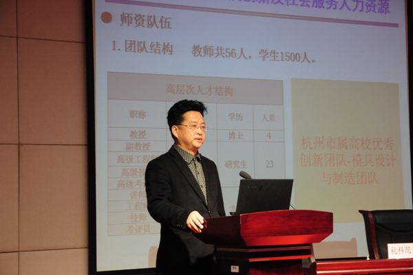机电工程学院院长罗晓晔教授简要介绍了机电工程学院科研创新及社会服务方面的相关工作,并就学院的科技创新与社会服务人力资源、科技创新与社会服务平台、科技创新目前实施的项目、人力资源五大科研内容和12大培训、承办的国内、省内技能大赛等作了详细介绍。