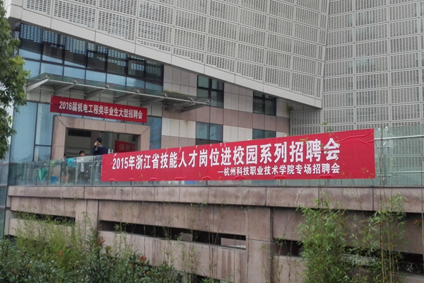 近日,“2015年浙江省技能人才岗位进校园系列招聘会——杭州科技职业技术学院专场招聘会”在我校高桥校区图书馆二楼举行。本次招聘会由浙江省人力资源和社会保障厅主办,浙江省就业管理服务局、浙江省职业介绍服务指导中心、浙江省职业技能教学研究所承办,我校招生就业处、机电工程学院协办。