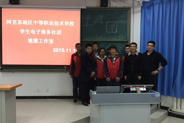 与刘昀老师所在学校邻近的阿克苏地区中等职业技术学校是当地的重点建设学校,他们得知刘昀老师在电子商务方面有特长,专门发函新疆大学科技学院阿克苏校区,并通过援疆教师帮扶工作室邀请刘昀老师到他们学校工作。在短短的三个月时间里,刘昀老师承担了当地两个学校的《计算机应用基础》、《电子商务概论》、《客户关系管理》三门课程的建设和教学,并建立了“青蓝工作室”,帮助当地教师提升专业水平。“青蓝工作室”建立以来,共开展活动15次,培训教师105人。在我校信息工程学院“杭州市重点专业建设——计算机信息管理(网络商务方向)”教学团队的支持和帮助下,刘昀指导当地学校成立了学生电子商务社团“雏雁工作室”,让我校的知名社团“雏雁工作室”在新疆的热土上开花结果。