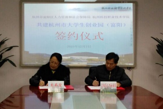 12月7日,我校副校长、行知创业学院院长徐红与富阳区人力资源和社会保障局副局长朱建富在综合楼3204签署了合作共建杭州市大学生创业园(富阳)协议。招生就业处、行知创业学院相关人员参加了签约仪式。