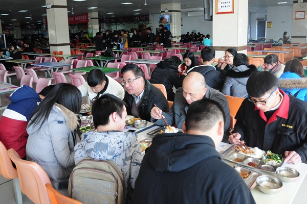 12月17日,校党委书记傅勤、副校长徐红与来自各二级学院的12名特困生在校食堂一楼餐厅共进午餐,并走访学生公寓。宣传部、学工部负责人陪同走访。