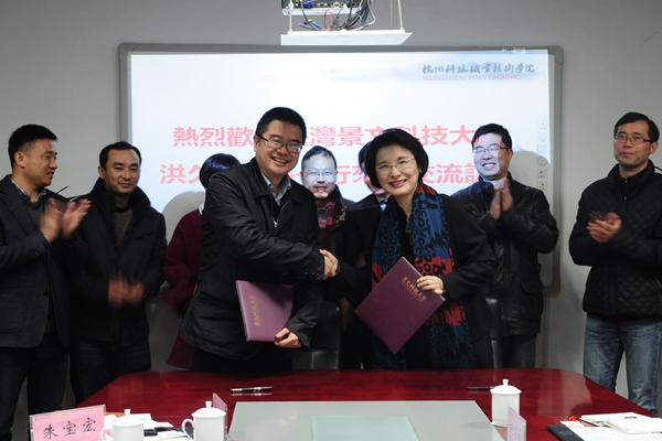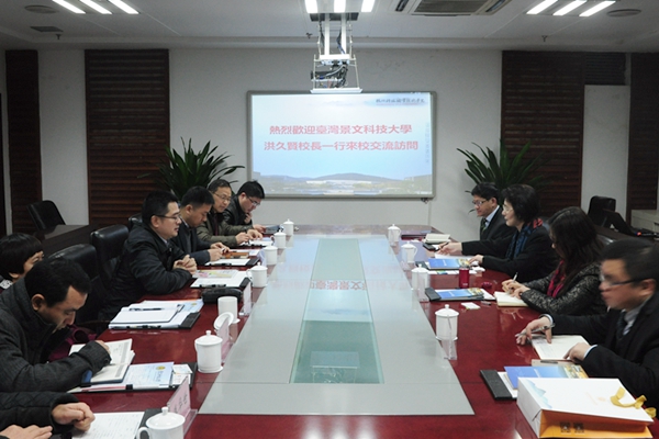 1月11日上午,台湾景文科技大学校长洪久贤来访我校,并与我校签署了初步合作意向书,就两校开展专题合作研究、探索合作办学途径、师生交流、学者互访、大陆台资企业所需人才共同培育等方面达成了初步合作意向。校长谢列卫参加签约仪式并与来客座谈交流。校办、国际教育交流中心、旅游学院、工商学院、艺术设计学院负责人参加座谈。台湾景文科技大学国际及两岸中心主任杨燿诚,杭州汇智东方人力资源服务有限公司总经理金相宏、市场总监罗强陪同来访。