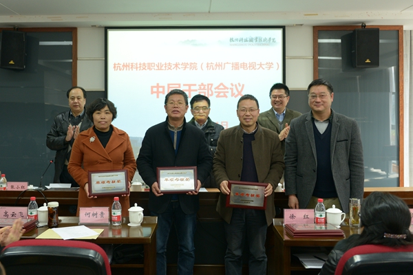 当天会上还表彰了2015年度部门工作业绩考核优秀部门(二级学院),发布了学校视觉形象识别系统。