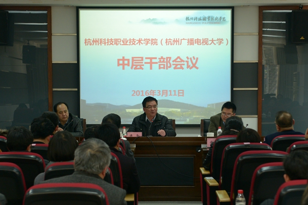 谢列卫校长在会上对学校“十三五”规划编制工作做了部署,并重点布置了学校年度党政工作。2016年,学校将着力加强内涵建设,着力推进创新创业,着力深化产学对接,着力建设重点项目,着力推动“两教”融合,着力强化内部管理,进一步打造办学特色,积极参与G20峰会服务保障工作,重点工作任务有六大部分35项。谢校长鼓励全体教职工,要以强烈的事业心、担当精神和创新意识来共同开创学校事业的新局面。
