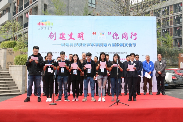 公寓辅导员、新宇寓管阿姨、校寓管会成员、各二级学院学生会生活部相关人员宣读了倡议书,希望同学们“践行文明修身、创建文明寝室”。