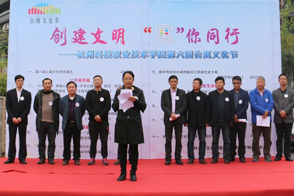 4月6日中午,我校第六届公寓文化节正式开幕,副校长徐红出席开幕式,学生处、校团委、公管处、保卫处、科新公司等部门负责人,各二级学院党总支书记、辅导员、学生代表,浙大新宇公司负责人等参加了仪式。