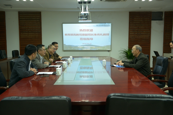 4月27日,教育部高教司原副司长朱传礼来校视察指导工作,校长谢列卫、副校长袁俊,党办、校办、教务处负责人等接待了朱传礼一行。