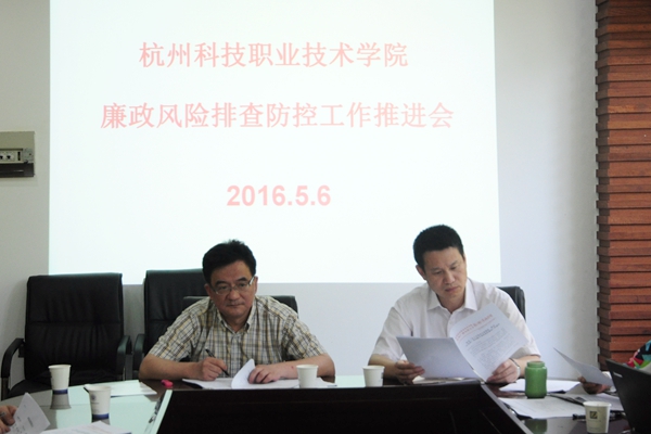 会上,监察审计室主任丁水娟、计财处处长徐永刚分别对《杭州科技职业技术学院廉政风险排查防控工作实施方案》和《关于开展对公款旅游、私设“小金库”等问题专项检查的通知》作了详细解读,并就每个阶段的工作目标、工作任务提出了明确要求。