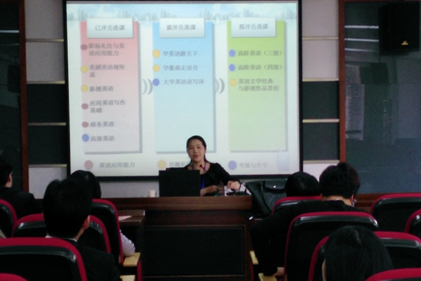 来自全省42所高职高专院校的外语学院院长、系主任、教研室主任、骨干教师等近100余位代表参加了此次会议。我校公共教学部全体英语教师参加会议,英语教研室主任陈宁红老师在会上汇报了我校以应用能力为导向的公共英语课程体系建设成果,并受到与会代表们的好评。