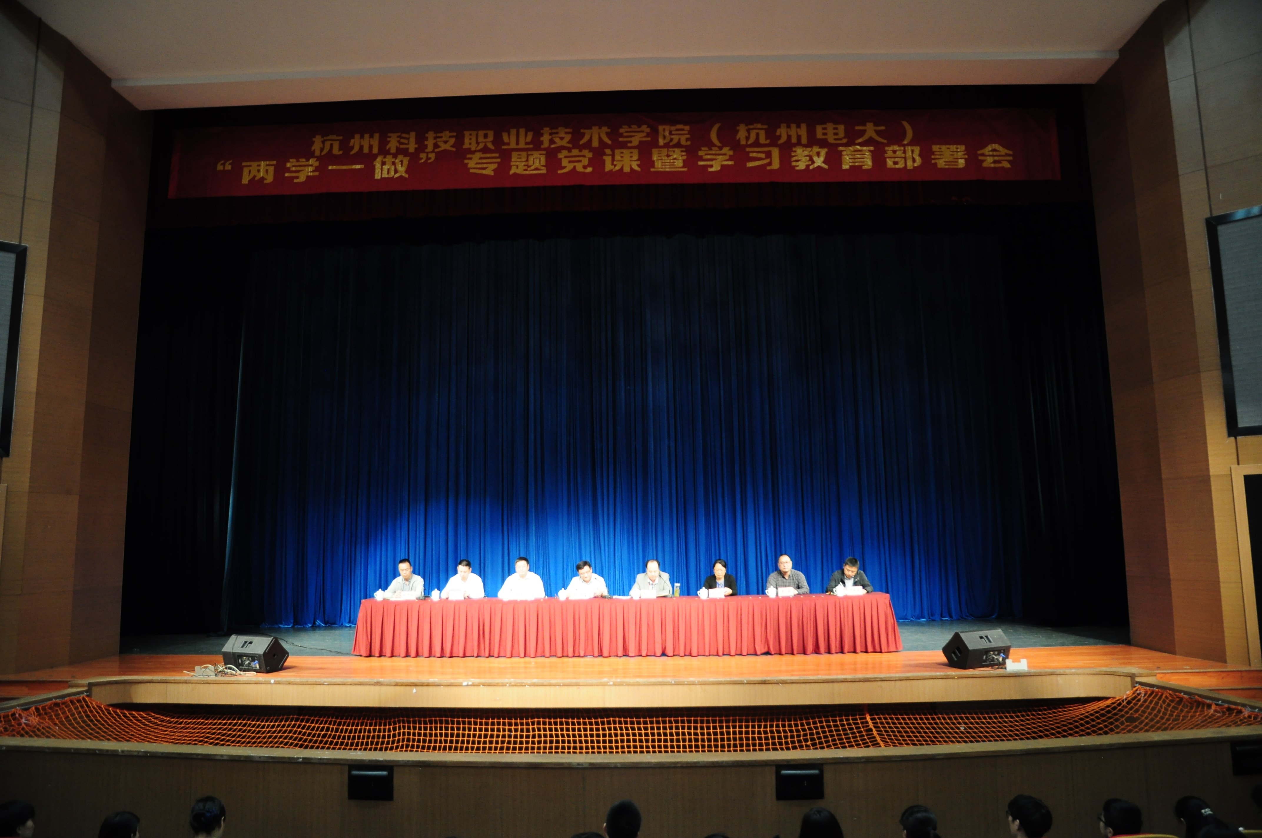 5月20日下午,我校“学党章党规、学系列讲话,做合格党员”(简称“两学一做”)专题党课暨学习教育部署会在高桥校区大剧场举行。校党委书记傅勤主讲专题党课,校党委副书记张小红主持会议,党委委员、党委组织部部长赵悦林对推进我校“两学一做”学习教育进行了具体部署,校全体在职党员(含学生党员)和离退休党总支代表近600人参加了此次会议。