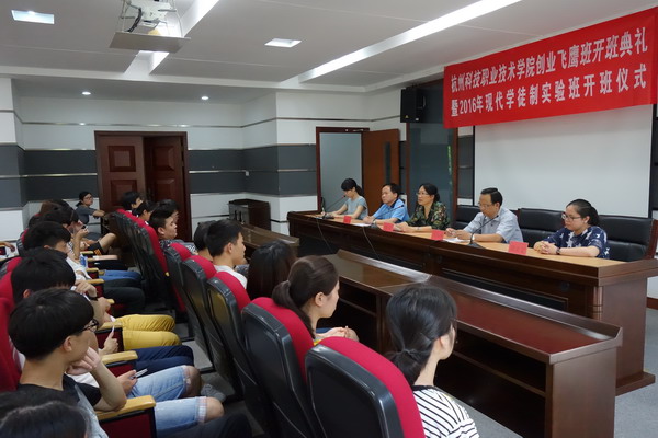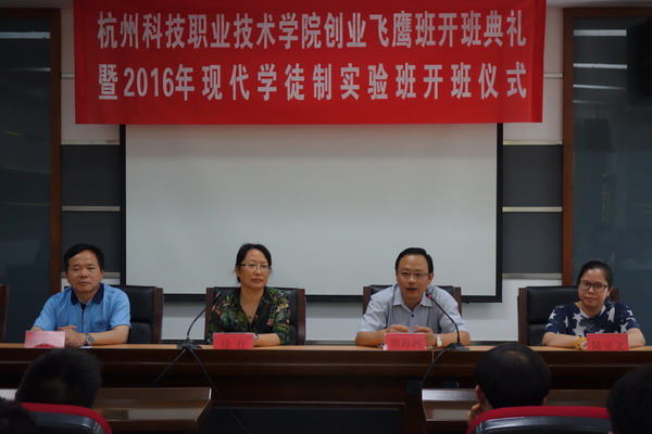 6月14日中午,校创业飞鹰班开班典礼暨2016年现代学徒制实验班开班仪式在综合楼会议室举行。副校长徐红出席典礼,招生就业处、教务处、信息工程学院相关负责人,创新创业服务中心、信息工程学院相关教师代表参加了开班典礼。