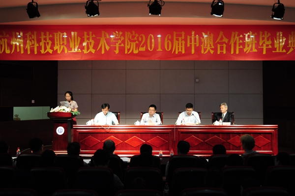 6月16日上午,我校首届中澳合作班毕业典礼在陶研馆报告厅隆重举行。校长谢列卫、副校长何树贵、墨尔本理工学院中国项目部经理Philip Nash出席了毕业典礼。