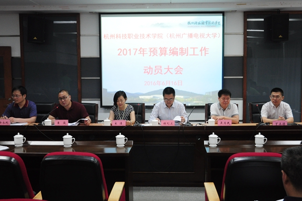 6月16日,我校召开了2017年预算编制工作动员大会,校长谢列卫、副校长袁俊出席本次会议。杭州市财政局教科文处副处长宋洁,杭州市财政局采监办副处长吴为民、杭州市财政局行政政法处丁正源应邀参加会议并给予业务指导。各学院(部门)负责人、综合办(科)主任(科长)以及全体财务联络员等参加会议。会议由副校长袁俊主持。