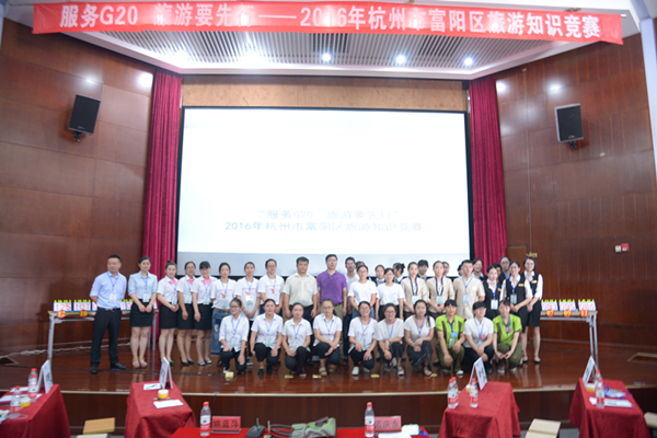 6月14日下午,由富阳区运动休闲办主办、富阳区旅游行业协会和我校旅游学院共同承办的“服务G20 旅游我先行”——2016年富阳区旅游知识竞赛在我校图书馆报告厅顺利举行。来自富阳区的12家旅游企业组队参赛,经过激烈的角逐,最终黄公望隐居地参赛队胜利夺冠。