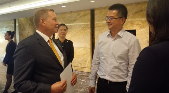 在答谢会前,谢列卫校长与洲际集团大中华区东区运营总监Mr. Daniel Arbenz 畅谈学生团队服务B20硕果。