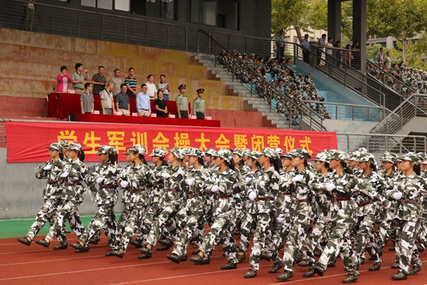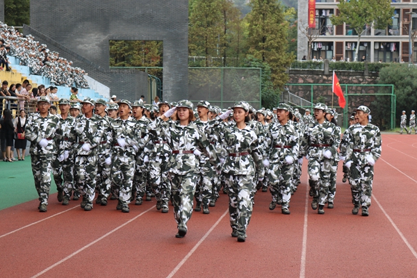 随着谢校长的一声令下,2016级新生分列式表演正式开始。经过两周的军事训练,同学们目光坚定、步伐有力,军容严整、精神抖擞,充分展示了我校学子朝气蓬勃、奋勇争先的精神风貌。随后,街舞、男子刺杀术、女子格斗术、教官战地救护等表演将会操大会推向了高潮。