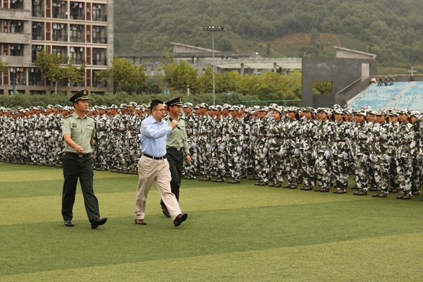 9月30日上午,我校2016级新生军训会操大会暨闭营仪式在校田径场顺利举行。校长谢列卫,副校长、军训团团长何树贵,副校长、军训团政委徐红,军训团副团长费耀出席仪式,学生处负责人、各二级学院党总支书记参加仪式。
