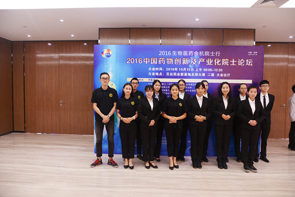 2016年下半年,旅游学院“会议工作坊”社团成立。社团成立后接到的第一项任务就是服务2016生物医药余杭院士行——2016中国药物创新及产业化院士论坛。