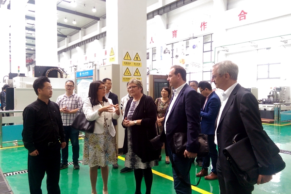 卡尔格校长一行在副校长何树贵的带领下,参观了机电工程学院智能制造技术应用中心和汽车工程技术应用中心,他们对我校的基地建设给予了高度评价。