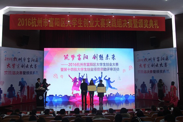 11月24日,由杭州市富阳区人才工作领导小组办公室、杭州市富阳区人力资源和社会保障局主办,杭州市富阳区人力资源开发管理办公室,我校行知创业学院、杭州科新教育咨询有限公司承办的“筑梦富阳 创想未来”2016年杭州市富阳区大学生创业大赛暨第十四批大学生创业项目资助评审活动在我校图书馆报告厅落下帷幕。