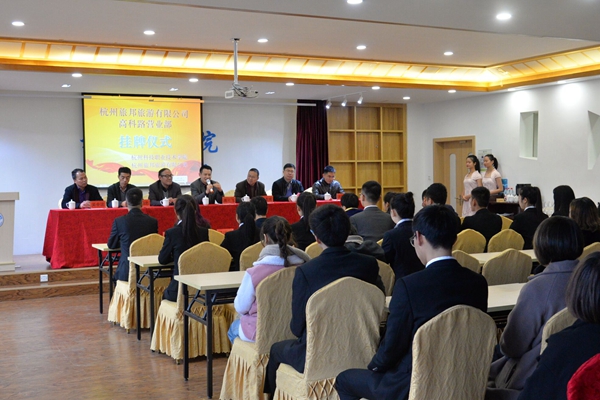 杭州旅邦旅游有限公司为富阳一家旅游综合体,旗下有旅邦旅行社、湖源溪漂流景区、富阳旅游营销中心、旅邦生态农场、名仕堡健身会所。杭州旅邦旅游有限公司在我校成立的高科路营业部,将作为旅游学院学生的实习基地,为学生提供全真的旅行社运营管理业务的实践训练平台。该营业部也将是我校学生服务社会的一个窗口。(撰稿:傅葆良 摄影:刘慧婷)
