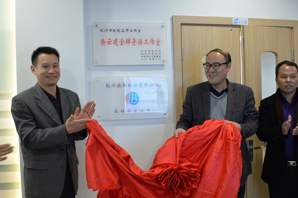 仪式上,高云飞和汪荣华共同为高科路营业部揭牌。吴全法为旅游学院“余云建金牌导游工作室”负责人余云建颁发高科路营业部经理聘书。