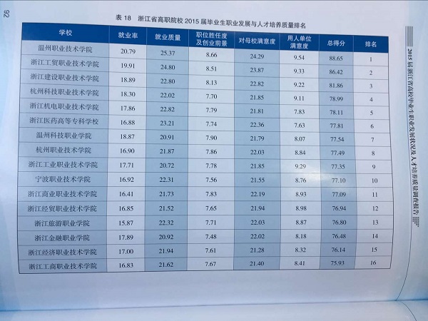 近日,2016年度浙江省高校毕业生职业发展状况及人才培养质量调查工作会议在浙江教育大厦召开。会议总结了2016年度高校毕业生就业质量跟踪调查工作,布置了2017年度毕业生调查工作的具体安排,并公布了2015届、2013届毕业生职业发展状况及人才培养质量排名。我校在浙江省高职院校2015届毕业生职业发展与人才培养质量排名中位列第四名,这是近三年以来我校首次跻身高职院校前五队列。