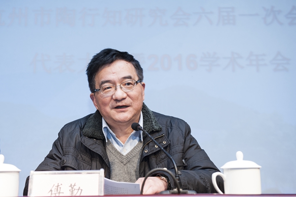 傅勤对市教育局、市教育工会和省陶研会领导的到来表示热烈欢迎,向长期致力于杭州市陶行知研究事业的专家学者和与会代表们表示诚挚的敬意,并对杭州市陶行知研究会成立25年来取得的成绩给予了充分肯定。傅勤表示,我校将陶行知先生的“爱满天下”教育思想确立为学校精神,将行知文化确立为学校主体文化,持续开展系列学陶师陶研陶活动,并在行知文化引领的创新创业教育实践和人才培养模式改革,行知文化“进制度、进教材、进课堂、进社团、进寝室”的“五进工程”等方面取得了丰硕的成果。