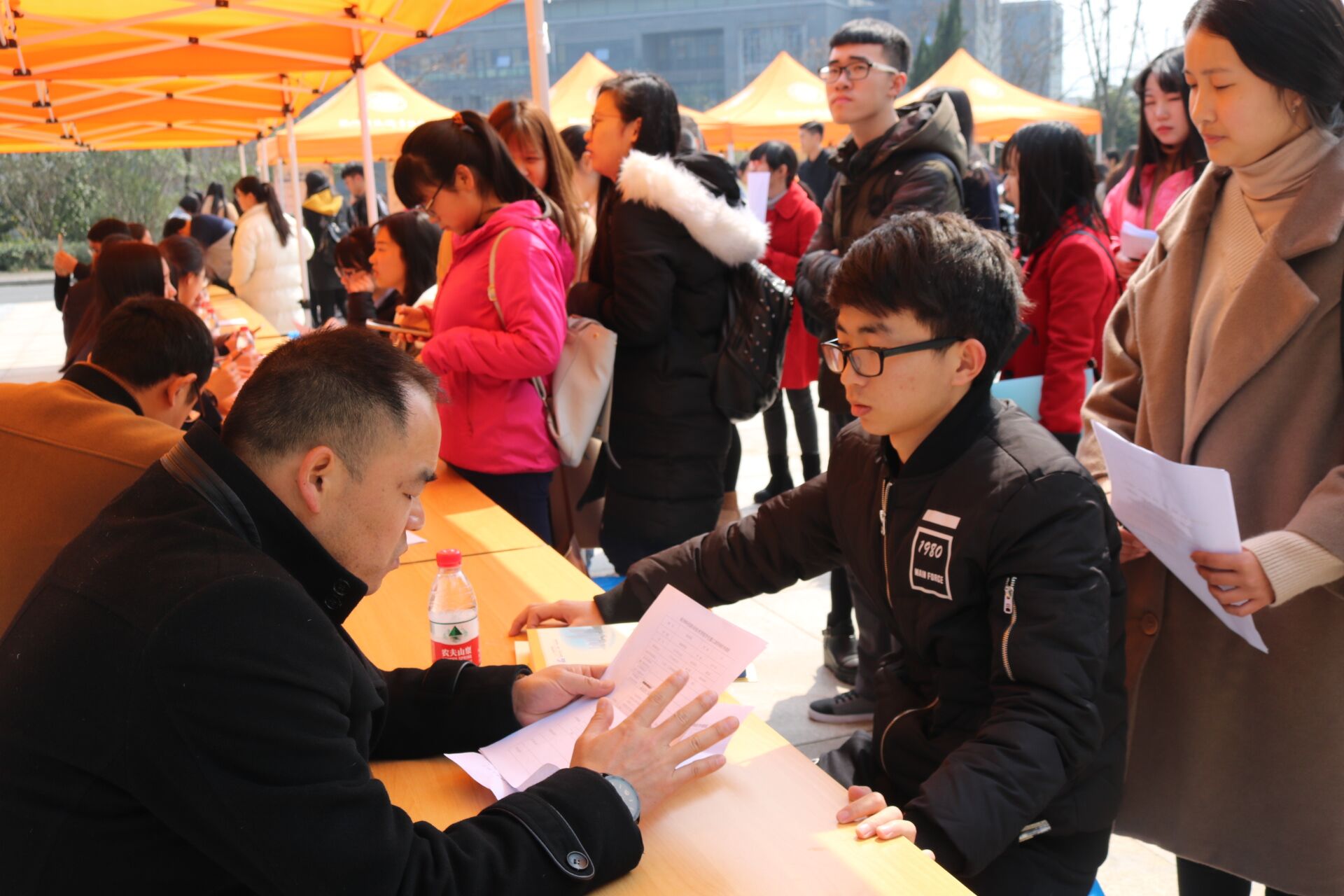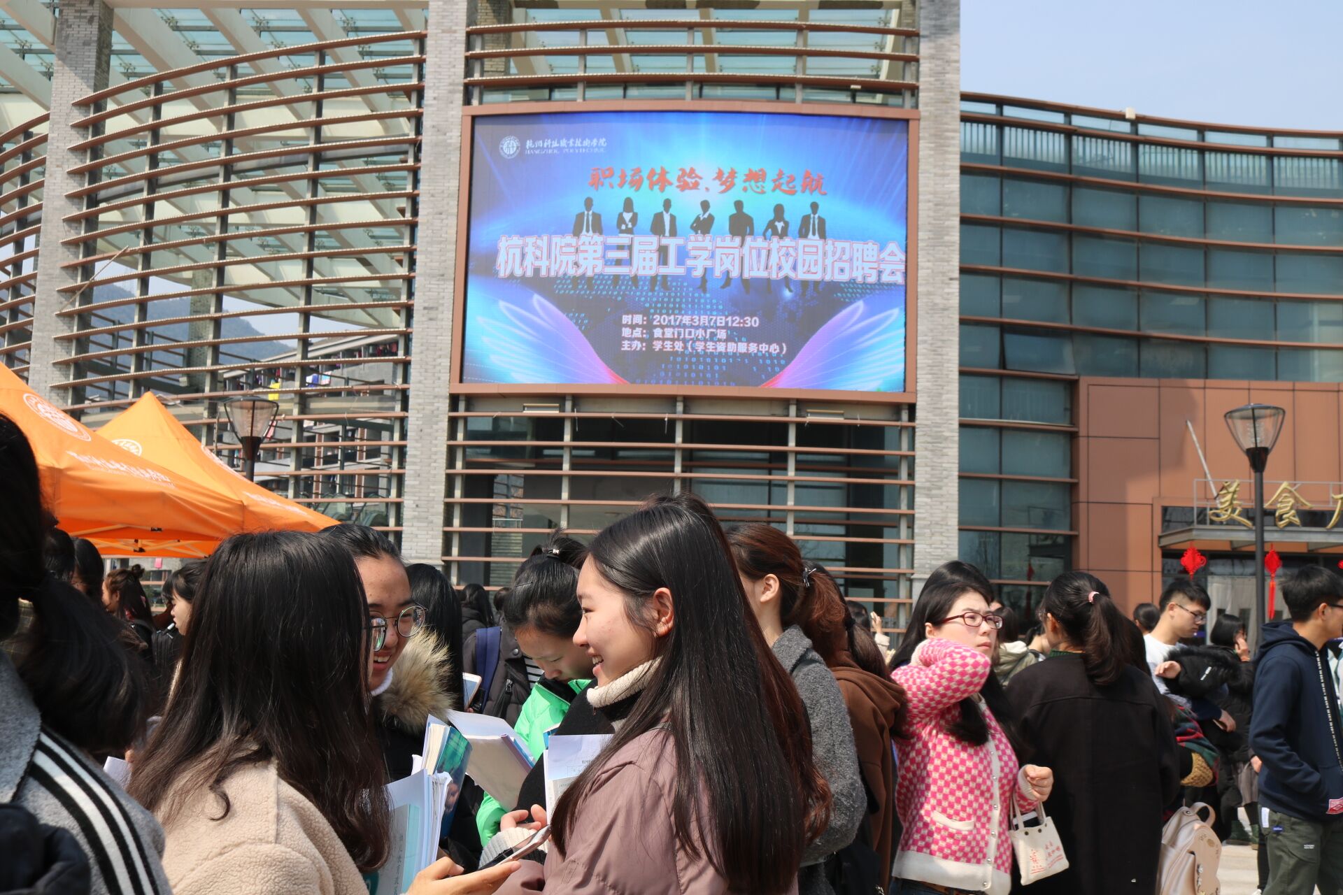 3月7日中午,我校第三届工学岗位校园招聘会在食堂前广场举行。