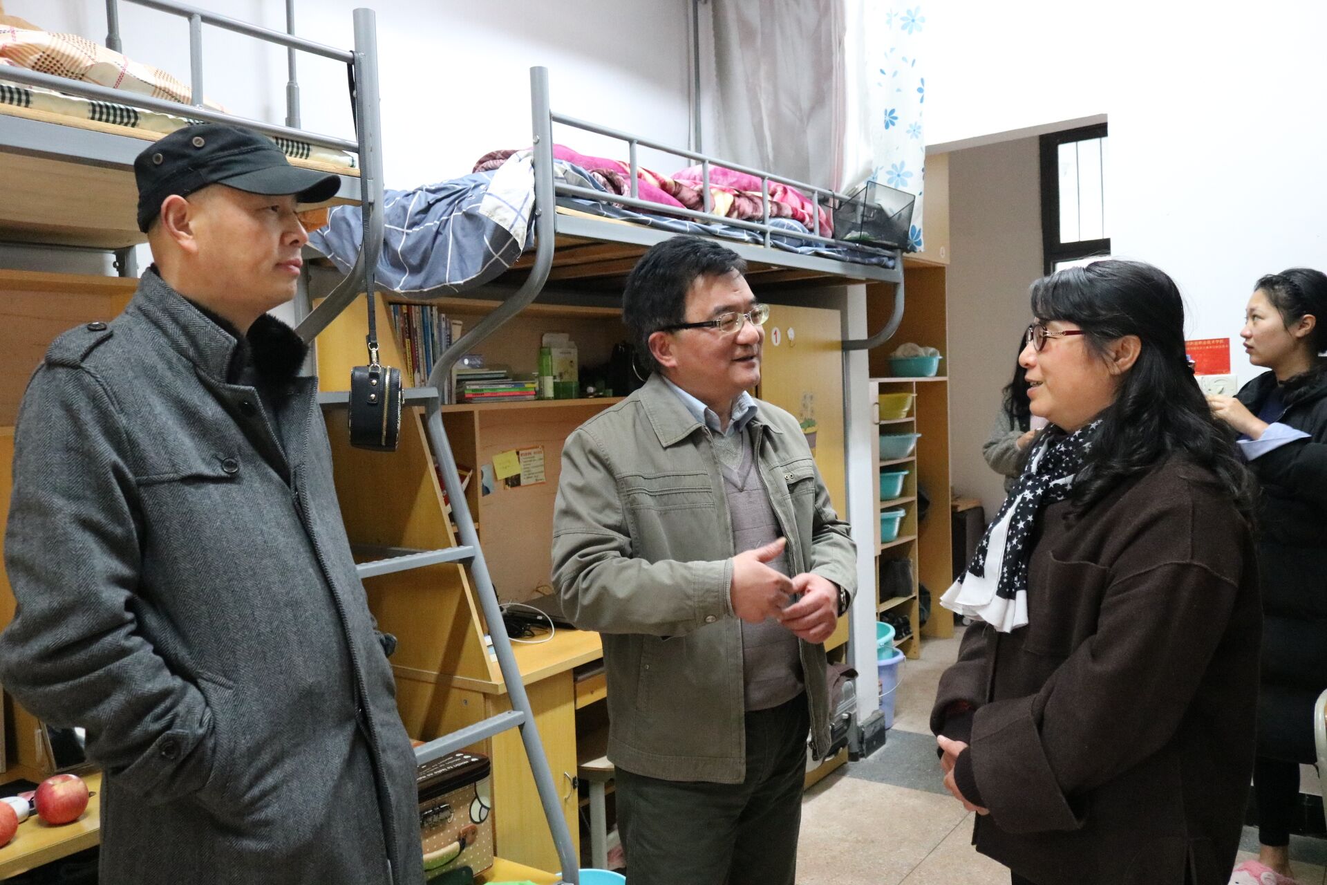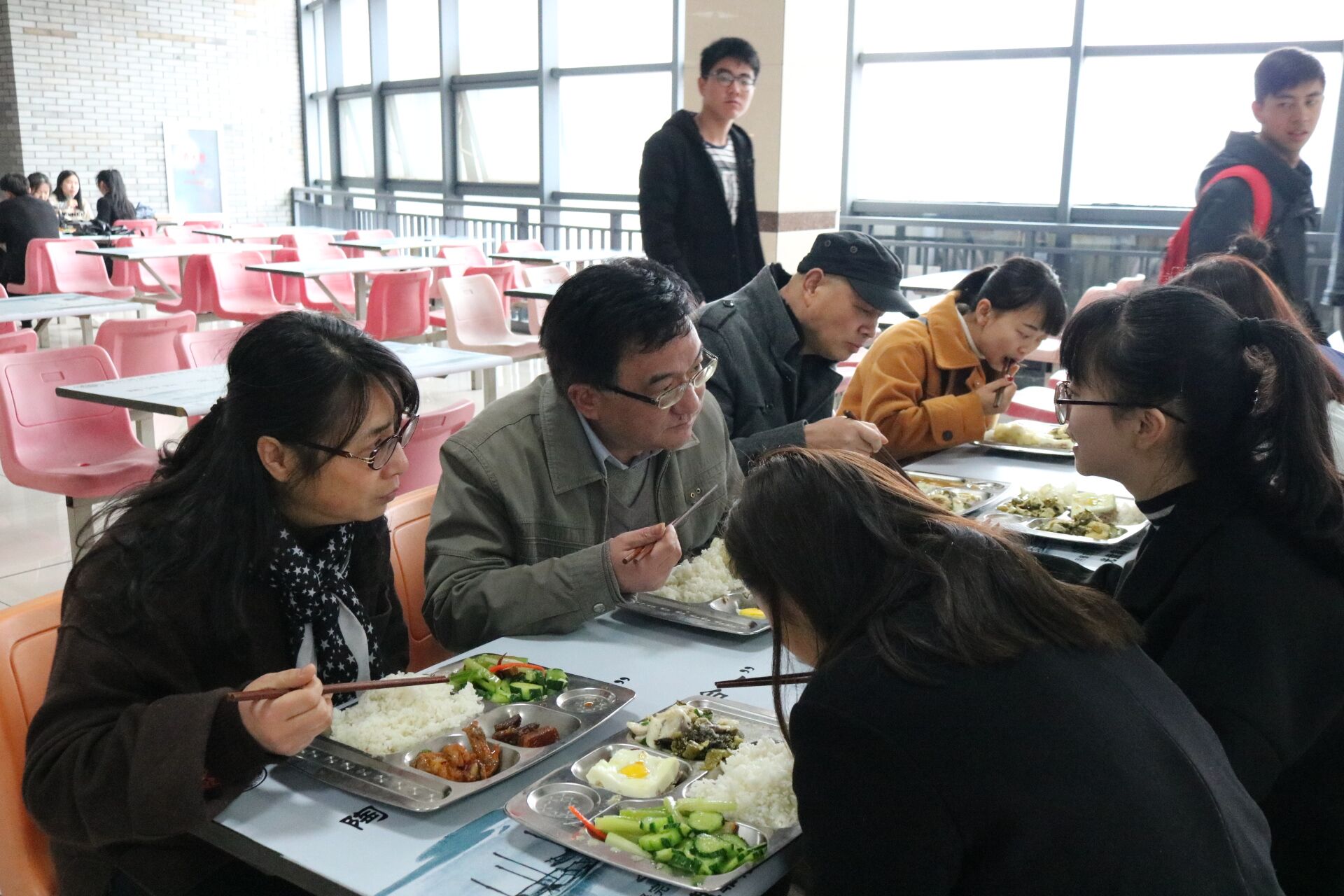 3月16日,校党委书记傅勤带领学生处、图书馆(网络信息中心)负责人,走访了学生公寓,了解学生生活、学习情况,并与五名勤工助学学生代表在食堂共进午餐。