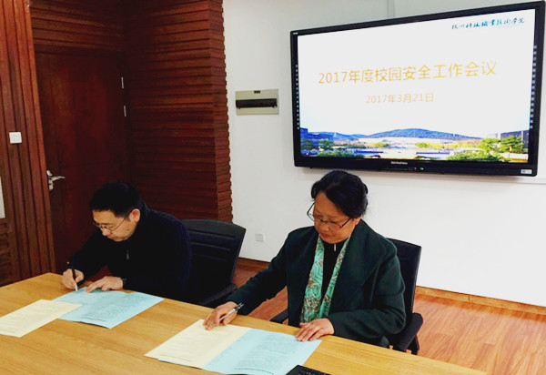 旅游学院、城区校区管理办公室、科新教育咨询有限公司负责人作为代表现场签订了校园安全责任书和校园反恐怖防范工作目标管理责任书。