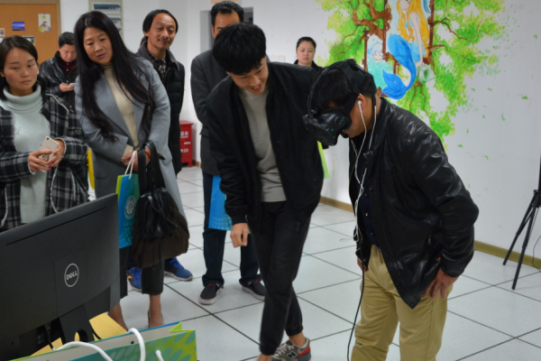 在学院党总支书记傅联云的陪同下,家长们走进课堂、走进专业社团、走进食堂与寝室,亲身体验了一把孩子们的日常学习生活。摆放在学院实训室内的VR虚拟现实体验设备吸引了诸多家长的关注,家长们纷纷要求现场体验。